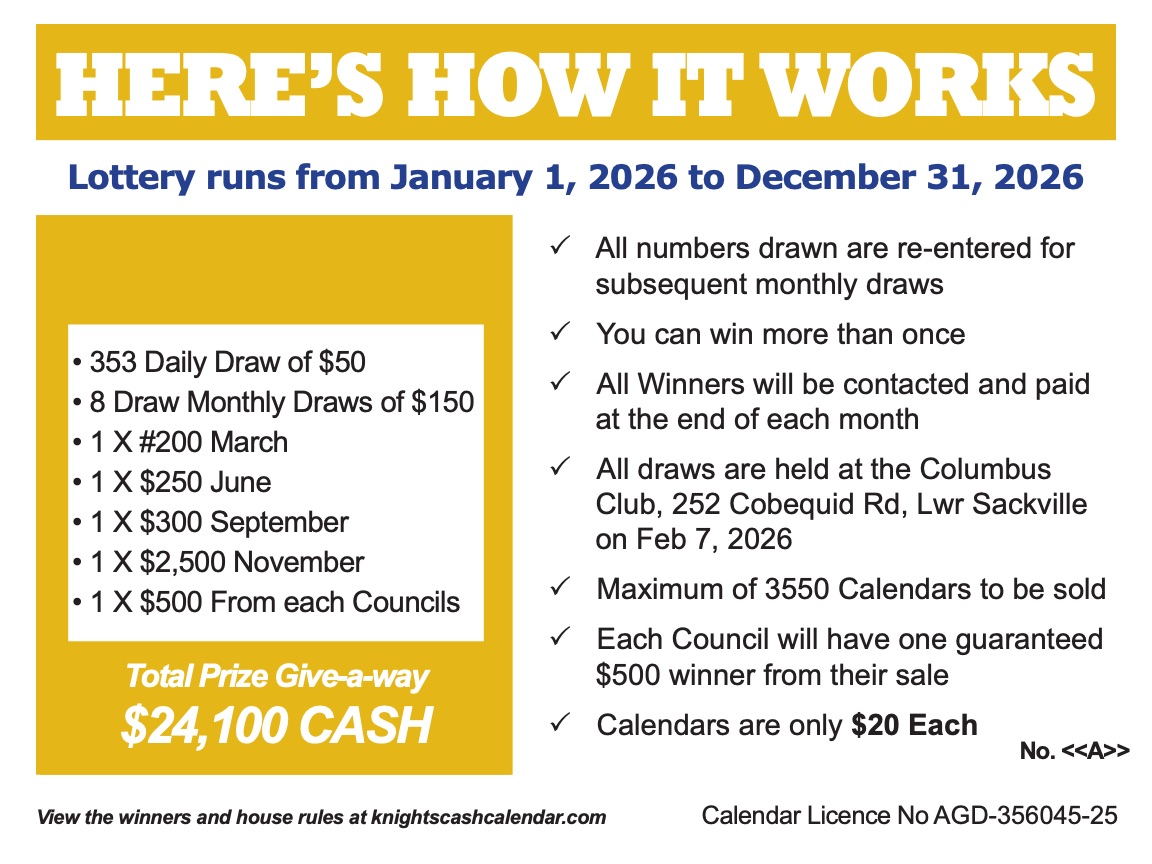Proceeds from the Cash Calendar will go toward the good work of these Knights of Columbus Councils in their home area.